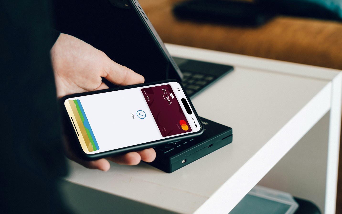 Sie können jetzt überall mit Ihrer DC Bank Debit Mastercard® oder Kreditkarte bezahlen, wo Sie im Geschäft, online oder in Apps